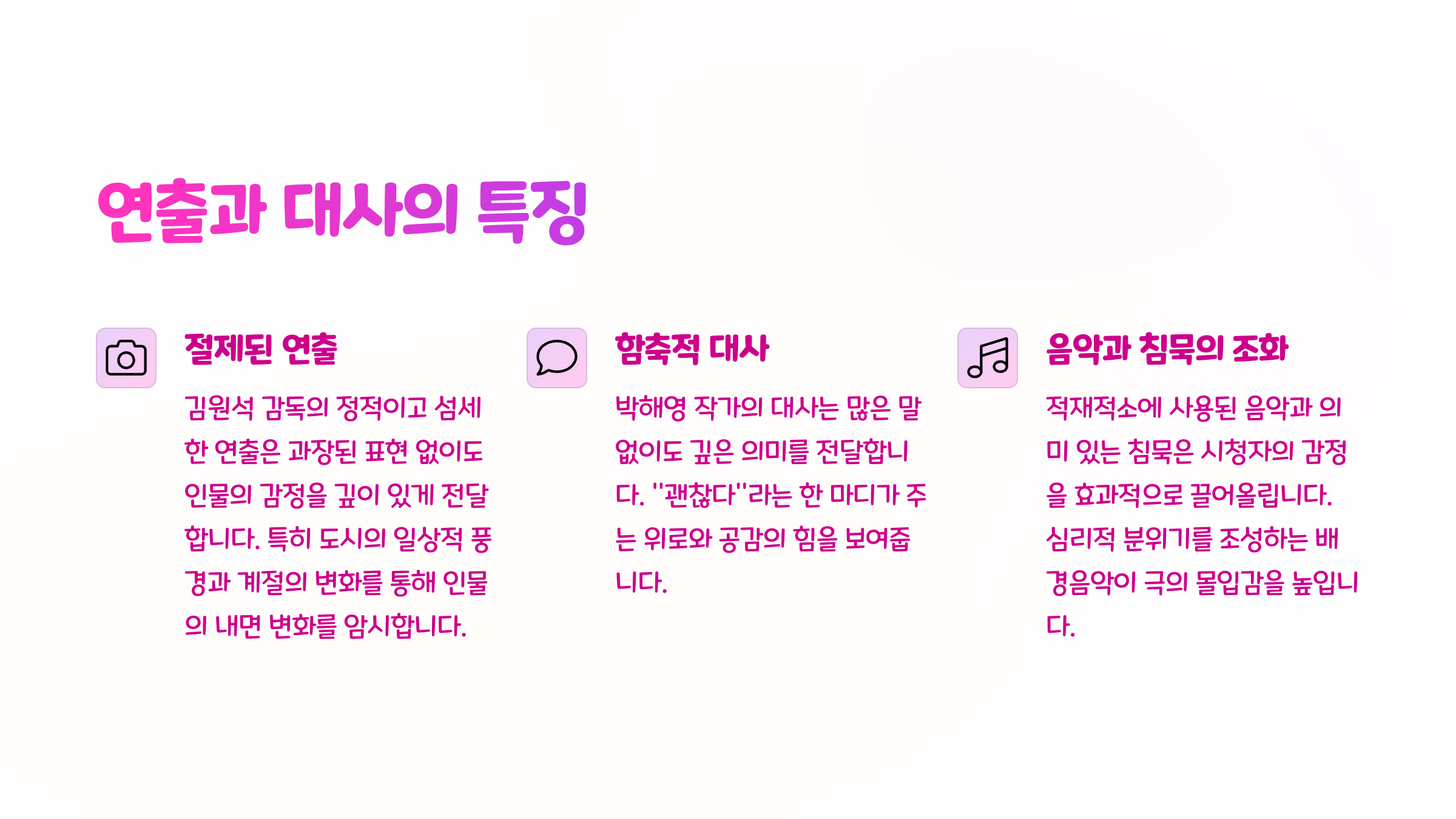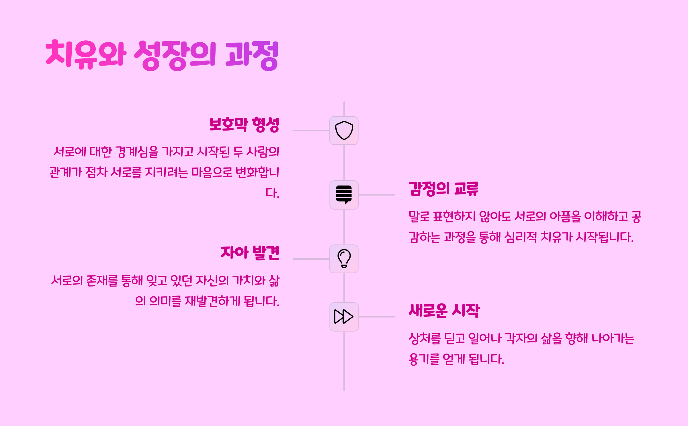 단순히 힐링 드라마로 보일 수 있지만, 사실은 인간 드라마에 가깝습니다. 고통, 치유, 성장의 드라마입니다.