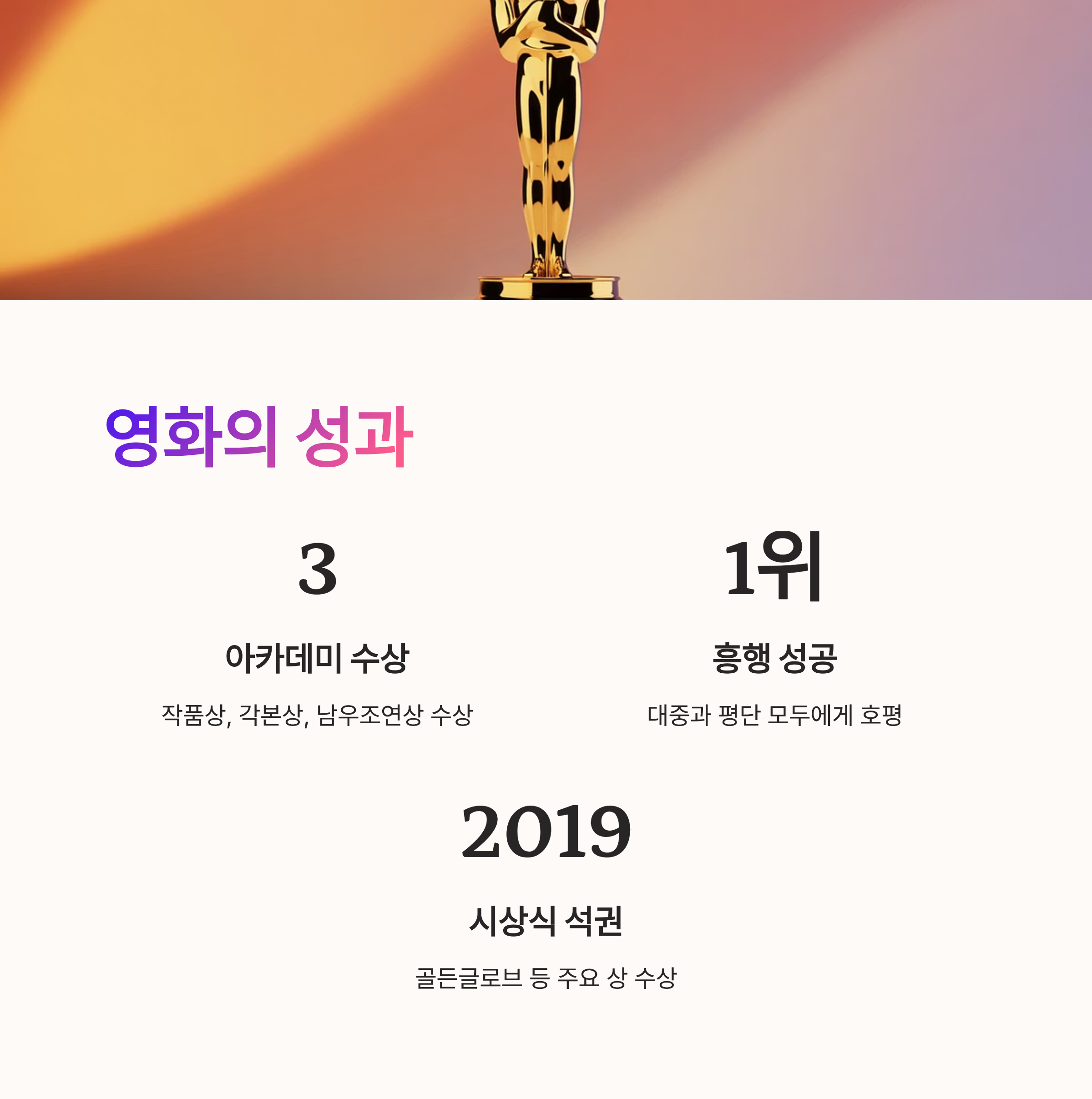 - 아카데미 수상 등 주요 시상식에서 작품성을 인정받았으며, 대중과 평단 모두에게 주목받았습니다.