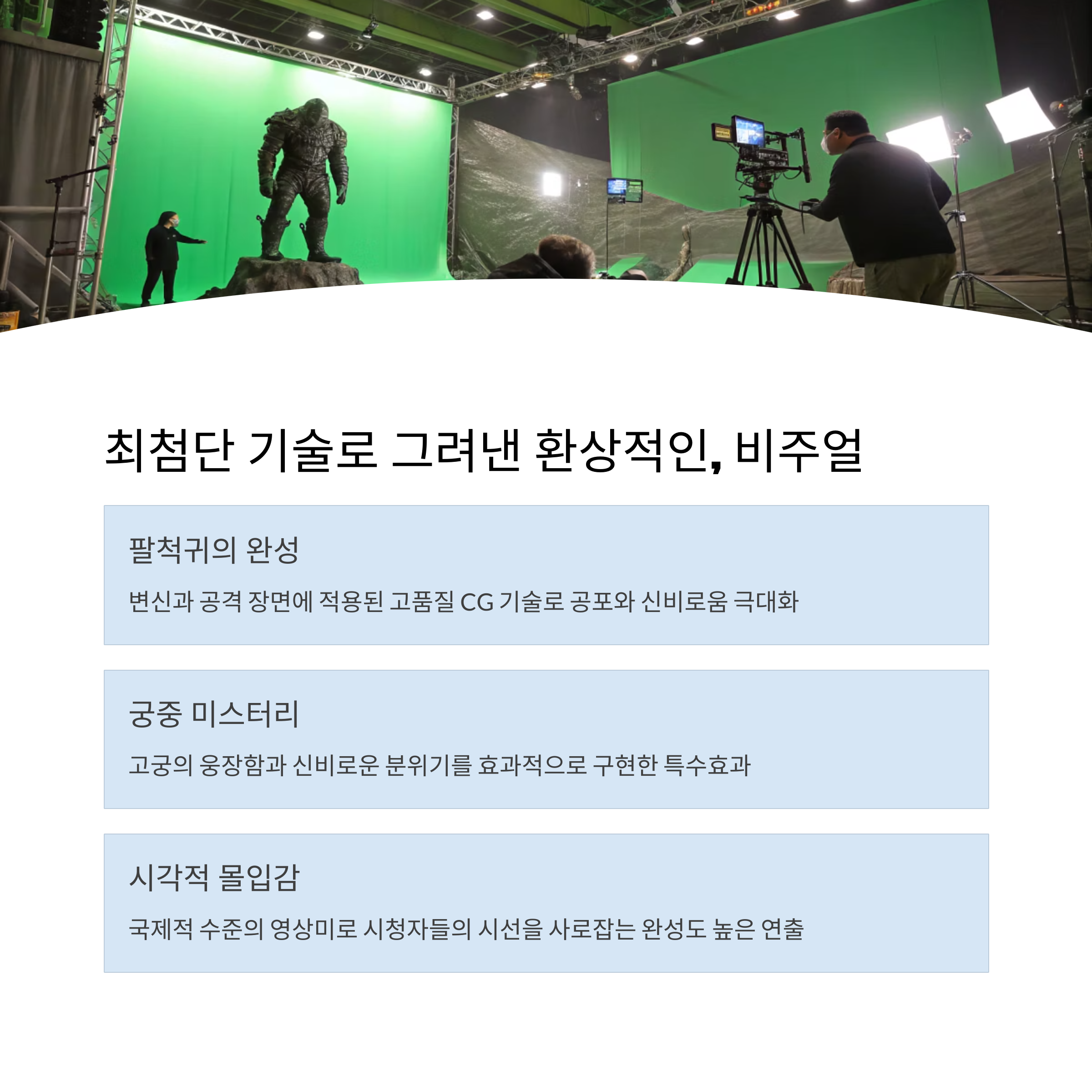 CG 기술과 세심한 고증이 어우러진 제작 방식은 판타지와 사실감을 동시에 잡았습니다.