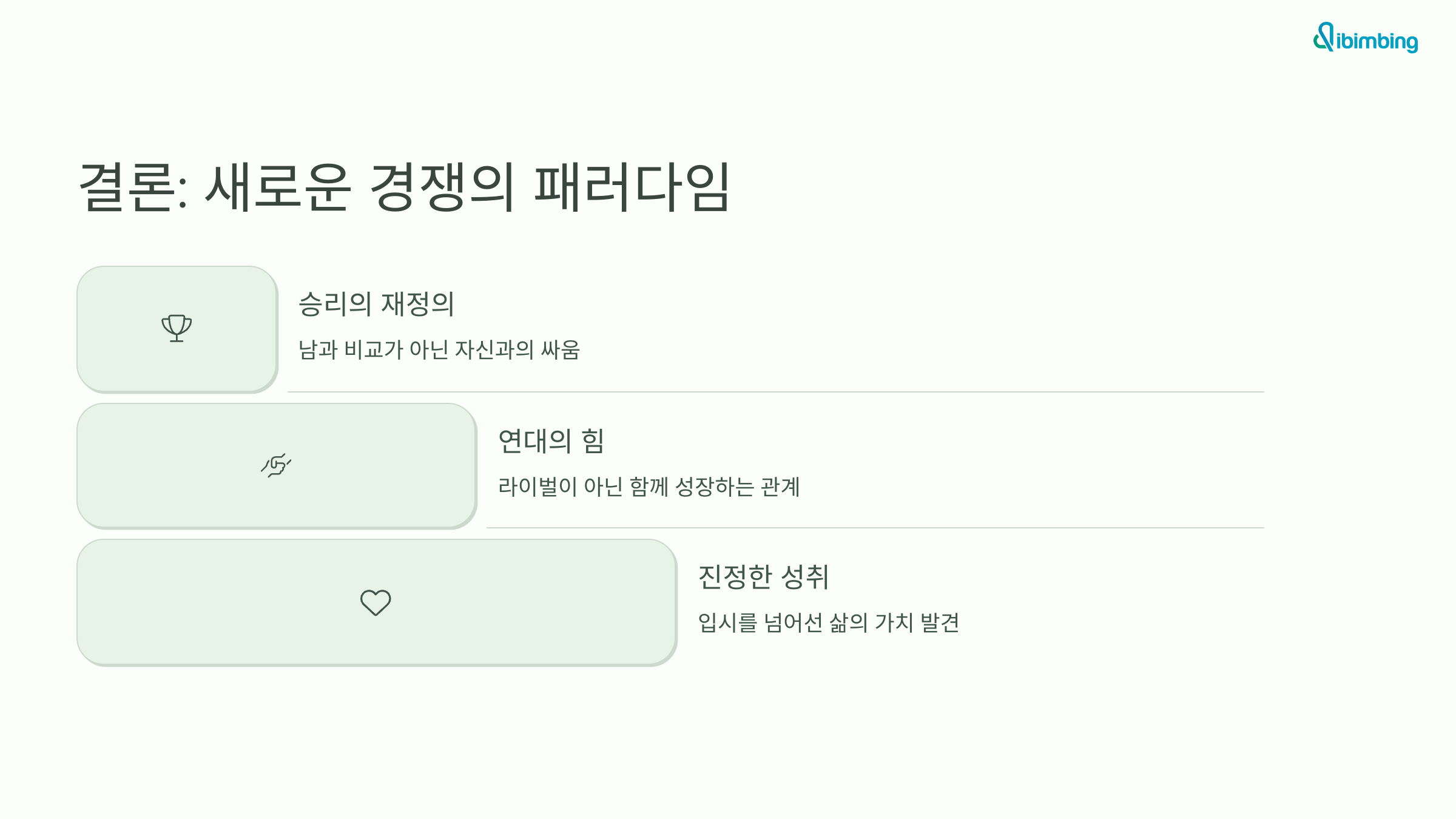 이는 경쟁의 끝이 아닌, 또 다른 성장의 시작임을 보여주는 상징이기도 합니다.