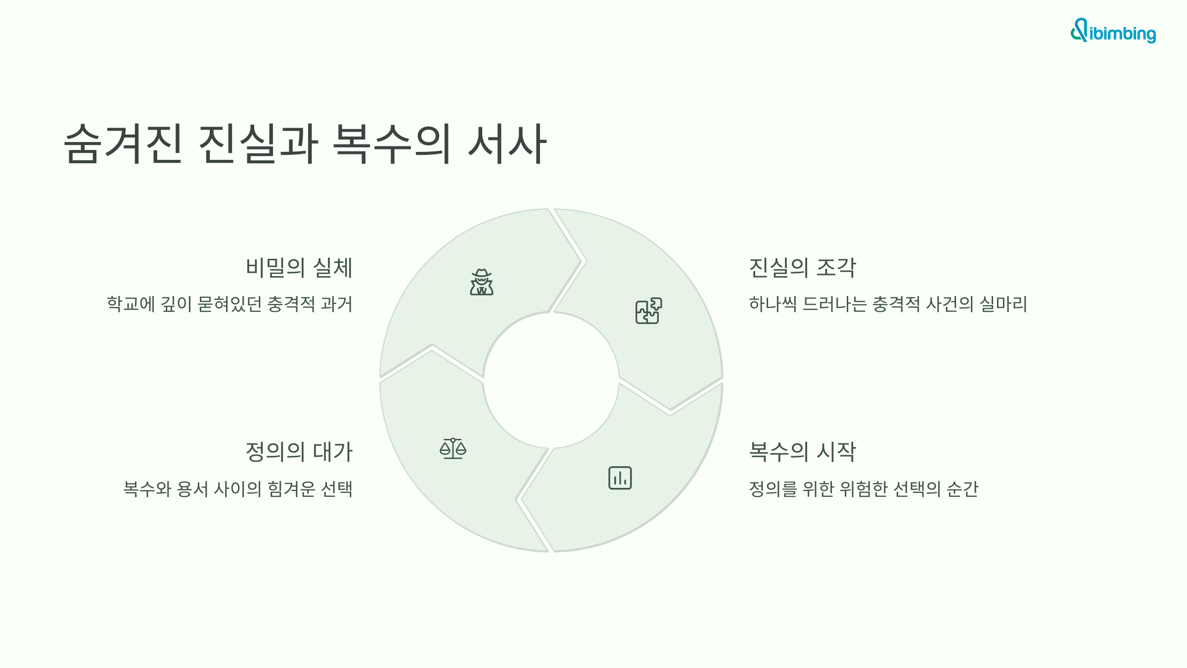 드라마는 단순 학원물에 그치지 않습니다. 슬기의 아버지 의문사와 수능 출제 비리, 그리고 권력 구조에 얽힌 부조리한 사건들이 엮이며 ‘학원+미스터리+걸스릴러’라는 독특한 장르의 정체성을 강화합니다.