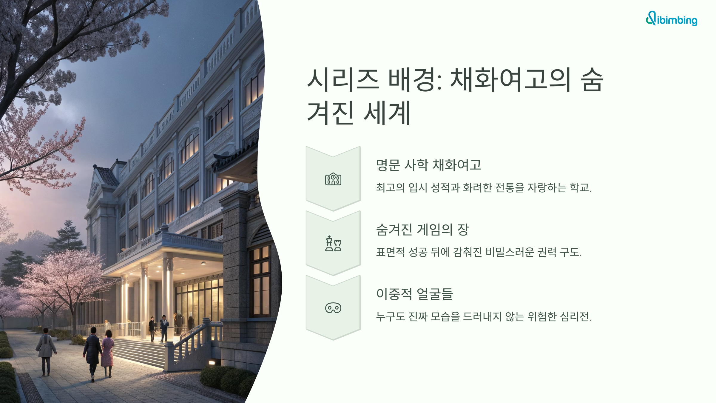 - 기본 줄거리: 입시 경쟁과 미스터리가 얽힌 채화여고에서 벌어지는 충격적 사건들과 인물 간의 심리전