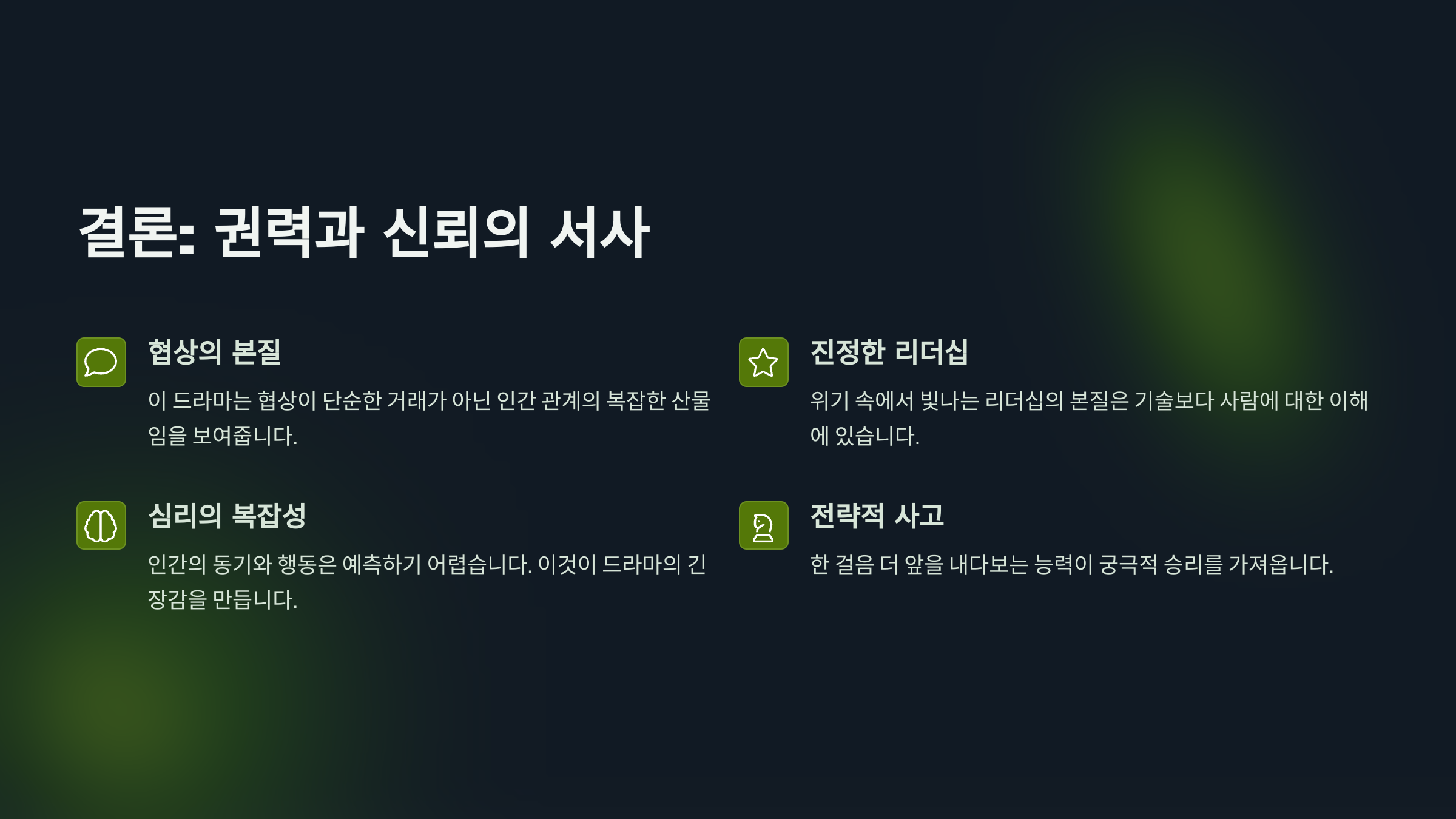 - 전략과 심리전이 교차하는 리더십 포인트