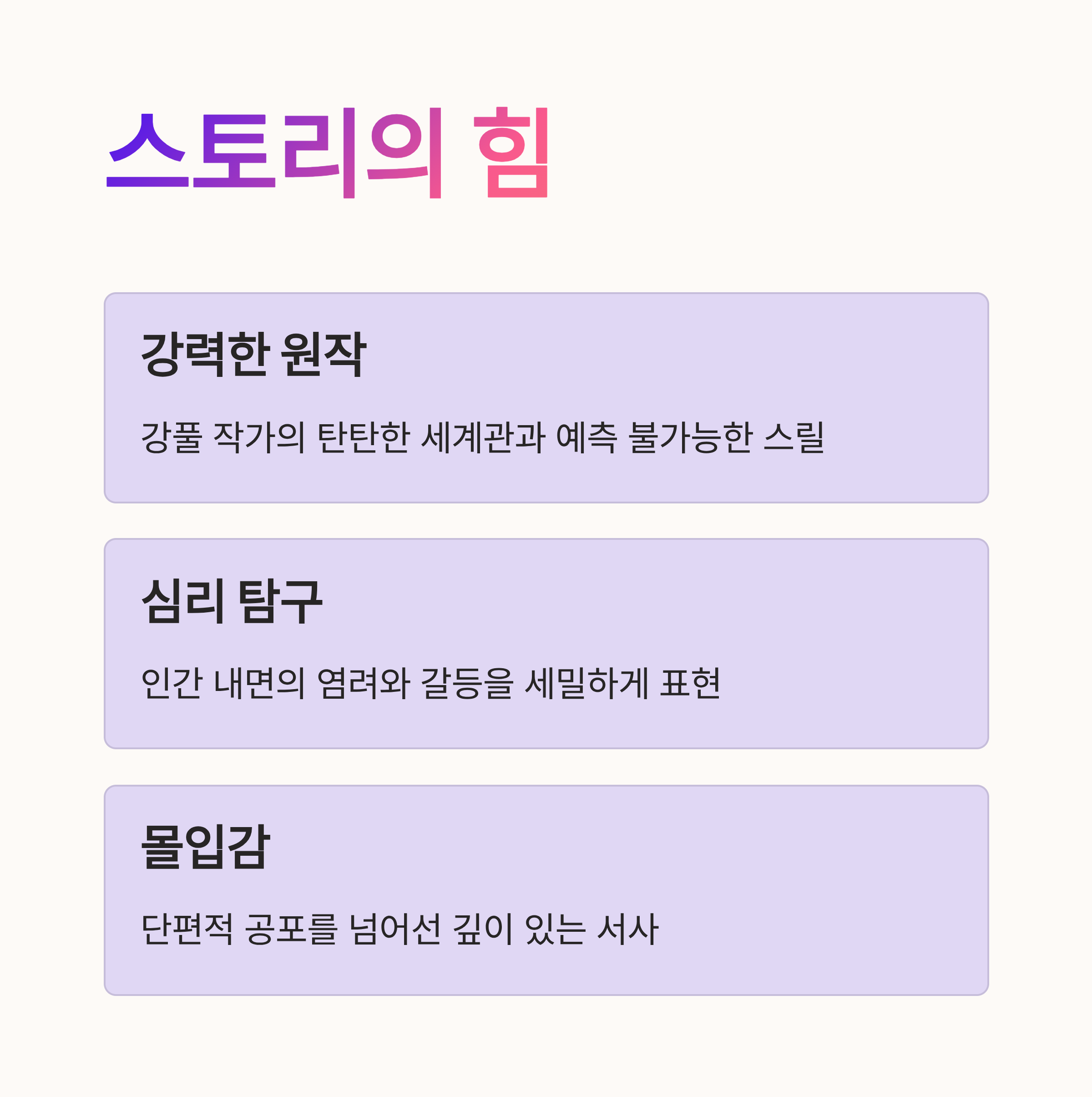 ‘조명가게’의 성공 요인은 무엇보다도 강풀 작가의 인기 웹툰이라는 강력한 원작에 기초합니다. 이 웹툰은 이미 국내에서 1.5억 뷰를 기록하며 독자들의 사랑을 받아왔습니다. 원작이 지닌 탄탄한 세계관과 예측 불가능한 스릴, 인간 심리 탐구 요소를 드라마에 그대로 녹여낸 점은 성공의 큰 요인으로 평가됩니다. 또한 드라마는 단편적인 공포 스토리에서 벗어나 인간 내면의 염려와 갈등을 세밀하게 다루며 몰입감을 높였습니다.